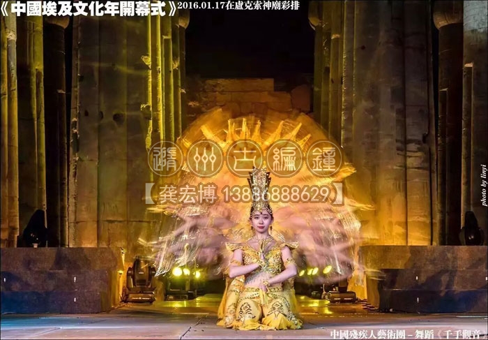 埃及當(dāng)?shù)貢r間2016年1月21日,國家主席習(xí)近平和埃及總統(tǒng)塞西在古老的盧克索神廟廣場共同出席中埃建交60周年慶?;顒郁?016中埃文化年開幕式。湖北省歌舞劇院進行編鐘表演禮樂《金石合鳴》。